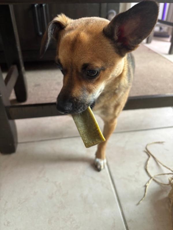 My pup was excited to receive her Himalayan Cheese Chew. She is a selective chewer and has enjoyed carrying her treat around the house to all of her favorite spots