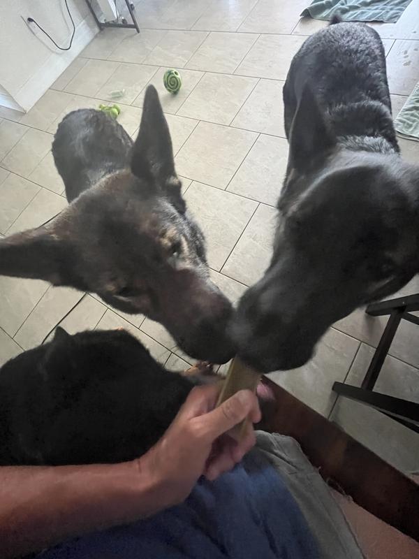 We have these on auto ship because all of our dogs love them and they are very long lasting. It takes over a month for all 4 dogs to get through this chew.