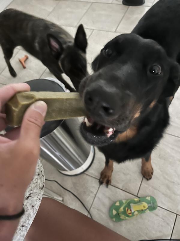 I was excited to try this bc my old man has had a lot of dental work and stinky breath. I was never one to give him bones but this was exciting to let him chew and