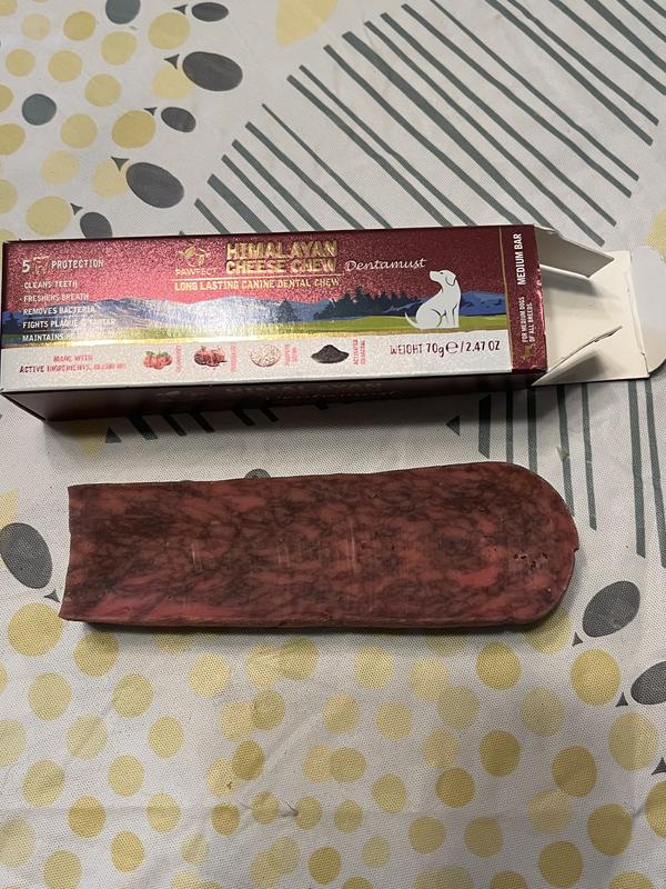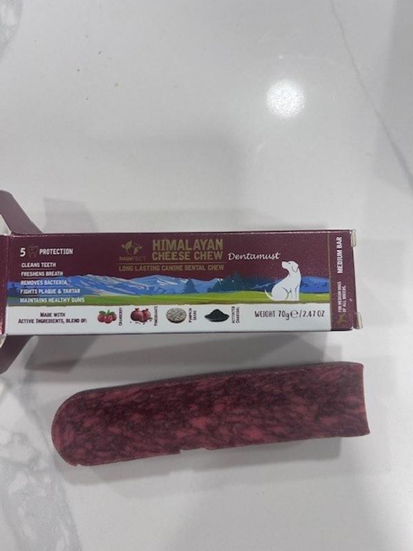 I recently tried the Pawfect Dentamust Himalayan Grain-Free Cheese Infused with Cranberry, Pomegranate & Activated Charcoal Extracts Dental Chew Sticks for my dogs, and overall, I’m very pleased with the product. My Golden absolutely loves it, it kept him very happily occupied and his breath noticeably fresher. My Bernedoodle also enjoyed it, though she’s a little more selective. The ingredient list is impressive, featuring natural and beneficial additives like cranberry, pomegranate, and activated charcoal for oral health. I appreciate that they’re grain-free and based on Himalayan cheese, which is a cleaner alternative to many processed treats out there. That said, I wouldn’t recommend these for small breed dogs. The sticks are quite firm and thick, which could be overwhelming or even risky for dogs with smaller jaws. They’re definitely better suited for medium to large breeds that can handle a more robust chew. who enjoys chewing and you care about dental health, these are definitely worth trying.