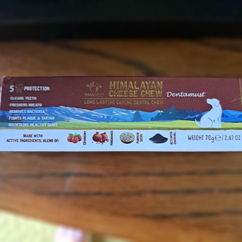 The Pawfect Dentamust Himalayan grain free infused dental dog chew stick has excellent ingredients. I love the 5 protections provided by the chew stick but I was