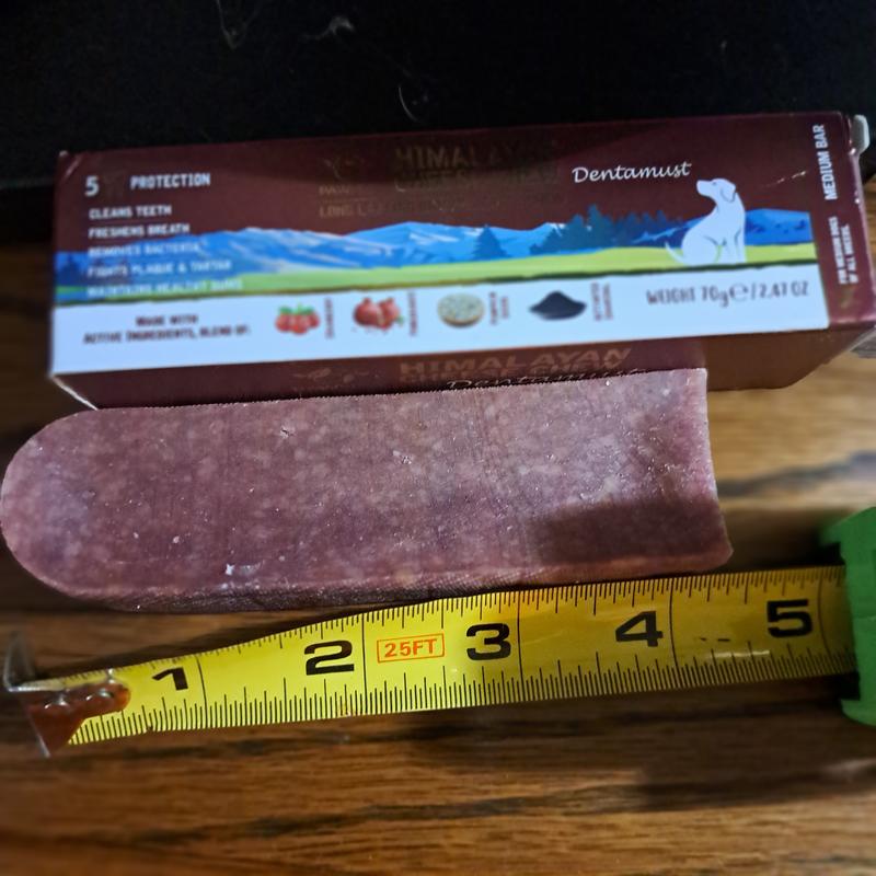 The Pawfect Dentamust Himalayan grain free infused dental dog chew stick has excellent ingredients. I love the 5 protections provided by the chew stick but I was not impressed with the size. It was approximately 4 1/2 inches. If the chew stick had been smaller I would have been worried about Bailey choking and I would not have given it to him. Bailey carried the chew stick to his bed but he seemed to be having trouble getting a good bite on it. The chew stick is rock solid. Bailey lost interest in trying to bite it and was content on holding it in his mouth as he walked around. He finally buried the chew stick in his bedding. I've given it to him several times and I get the same reaction. Honestly , I wasn't impressed with the chew stick. Bailey didn't seem to get much enjoyment out of it so I don't think I'll buy another one for him.