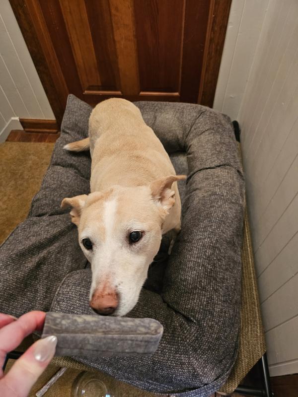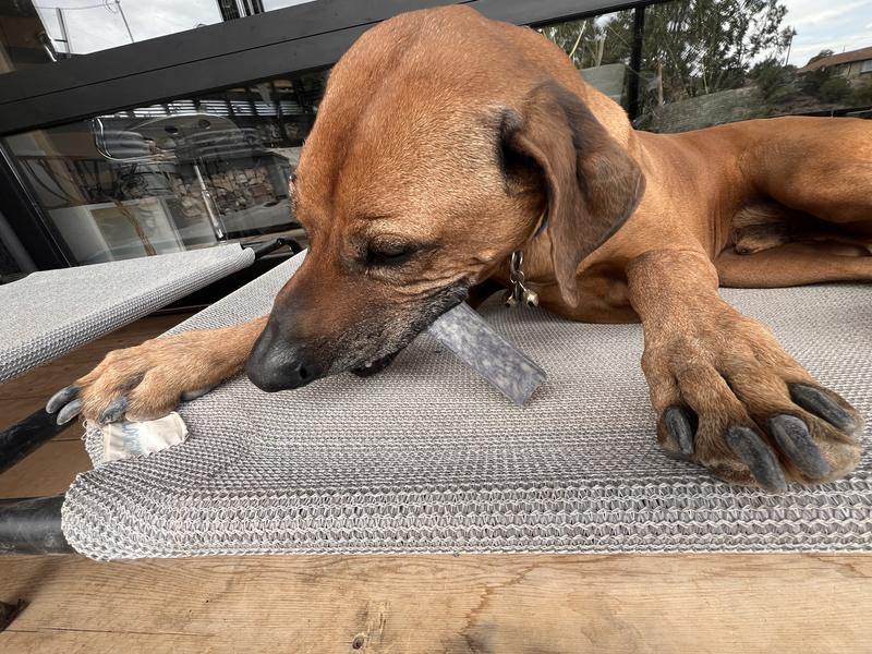 I can only write the review from my experience with my dog. She was not interested in this treat at all and she is highly highly food motivated. It’s also very hard which I was not expecting and while that would be good for a super chewer - it’s not great for my dog who would bleed all over this if she would’ve tried it. I will say it didn’t have any smell which was nice and the packaging was good. I also liked that it’s made with whole ingredients.