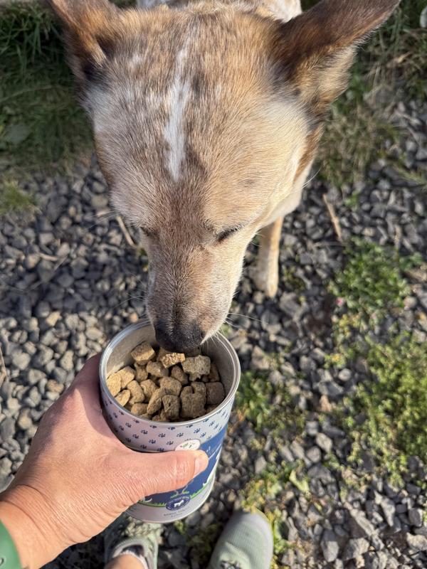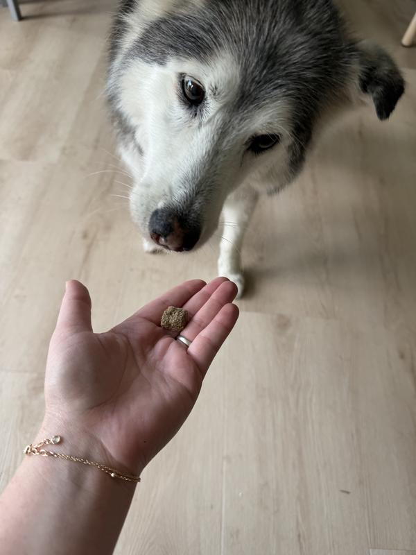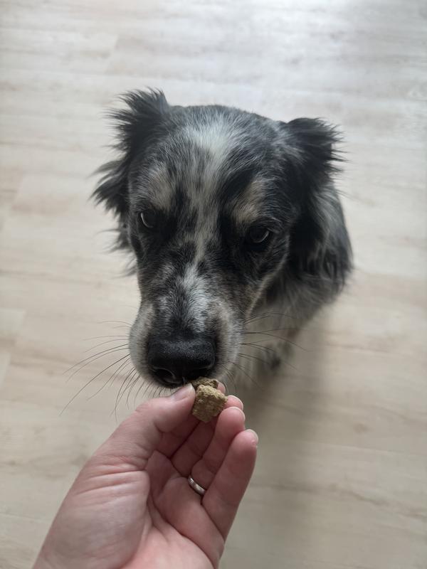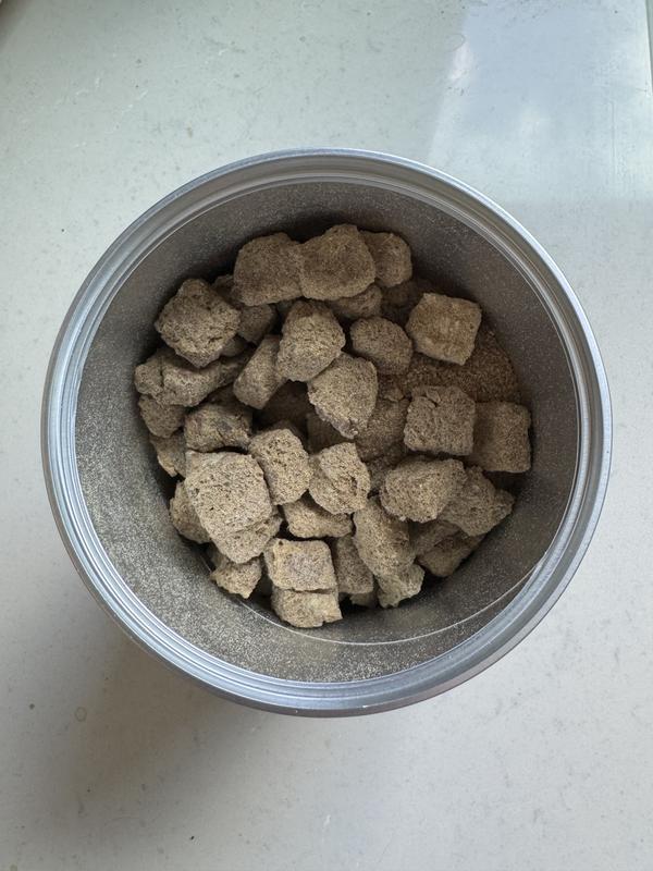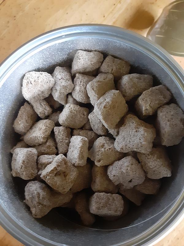 I have fried several treats of animal livers because I know they're a high value for my pup Skyler in her training I've never really been satisfied by too many others as they are small and they flake a lot they are great tasting for the pups and she loves them but it for me it's just difficult to handle for her however when I received this product I love the shape and the content of each of the bits there in a lovely square shape that is easy to handle for me and the taste Skyler thinks is absolutely wonderful to date I have no objection or concerns about the treat I like the packaging it is extremely handy for me to use in fact it's one of the best handling products I've had I can highly recommend this product for Skyler and her training and for Petra who stares at Skyler during training only waiting for treats. I hope this helps everyone and I encourage them to at least try it so far so good