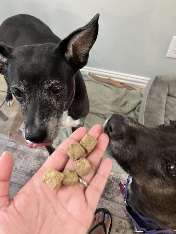 2/3 of my dogs enjoyed these treats right off the bat with the other dog warming up to it after a while. I like that they are already small and can be used for training treats but also can be broken up into almost a powder to sprinkle on top of foods if desired. These are a single ingredient item made with liver that most dogs enjoy.