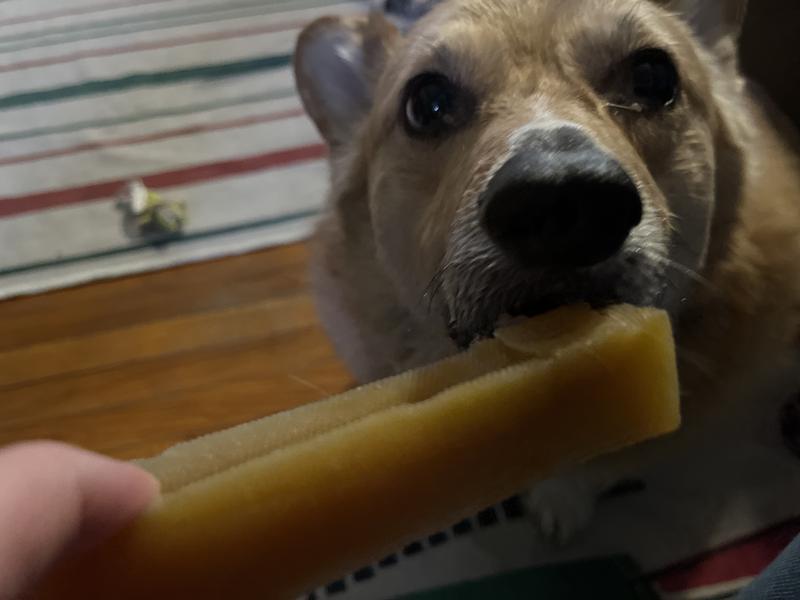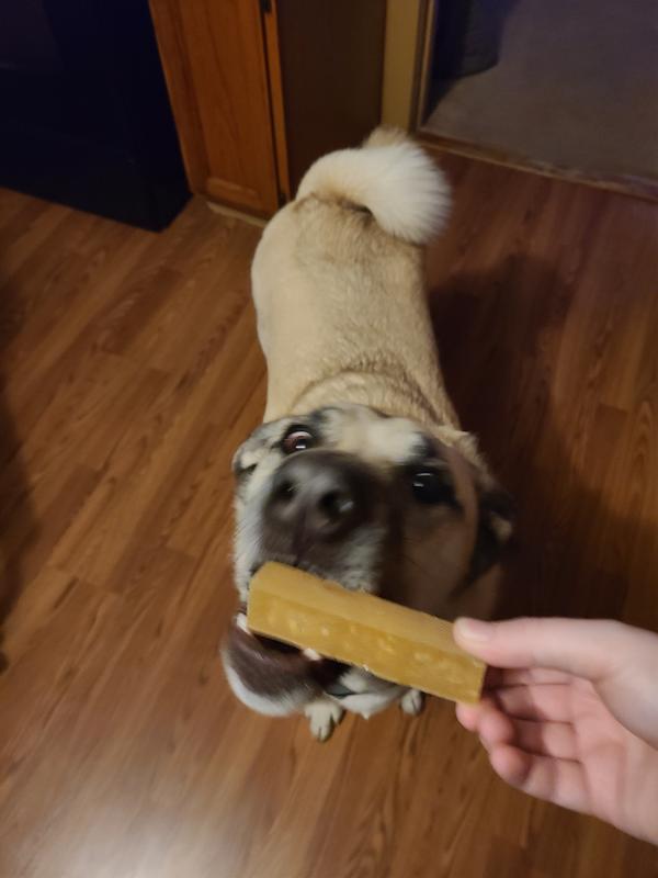 Moose really enjoyed these cheese chews, but they definitely weren't "long lasting." Moose is definitely a power chewer so one of these chews was gone in under 30