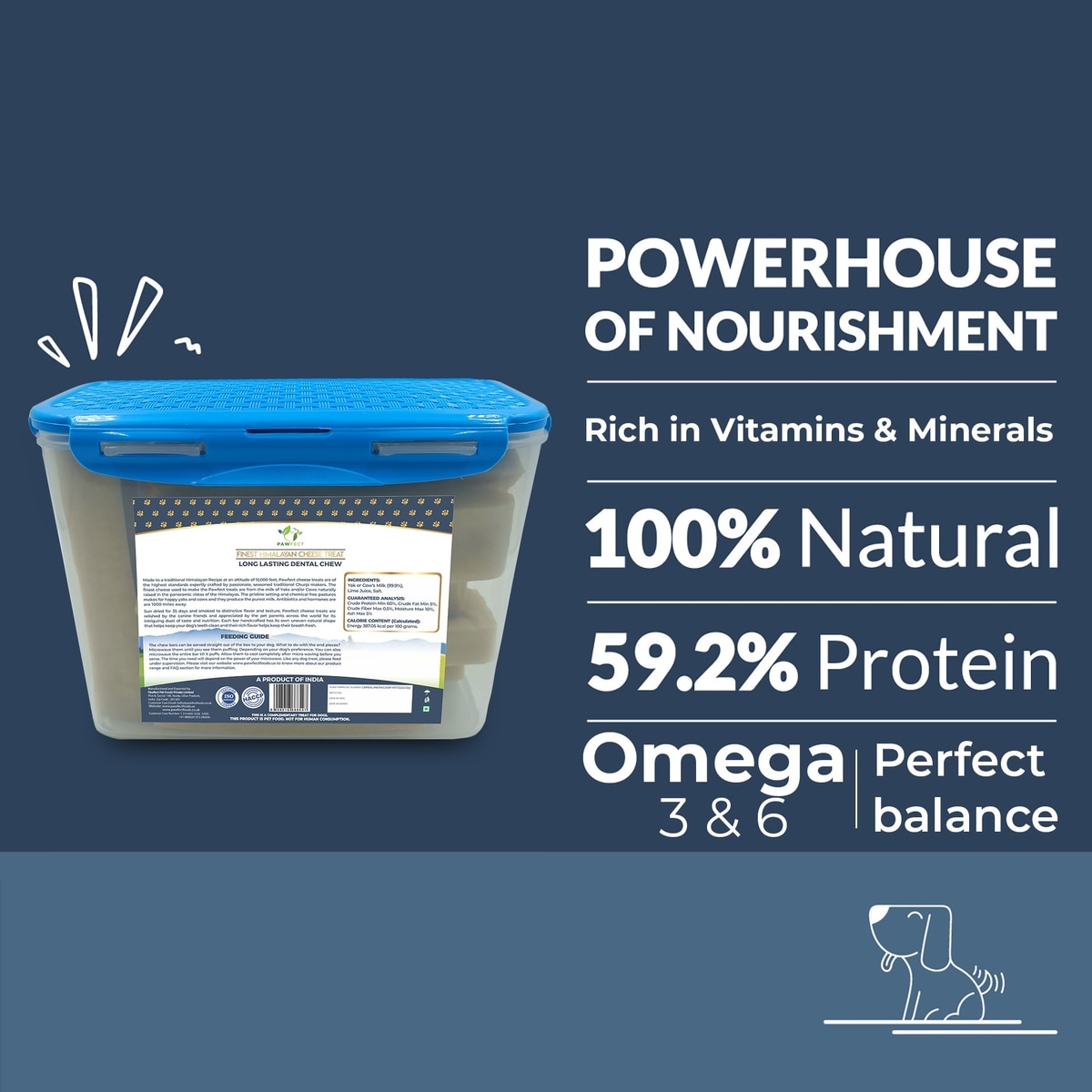 What are cheese chews made of? Pawfect Cheese Chews are made using 100% natural ingredients, that includes cow milk, lime juice, and a pinch of salt. They are free from artificial preservatives, flavors, and chemicals, ensuring a healthy treat for your furry friend.