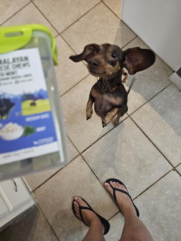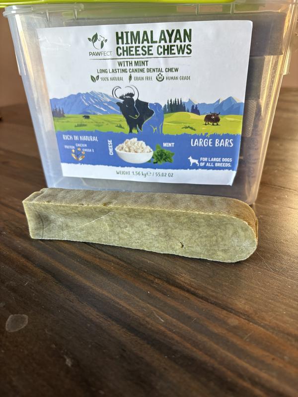 My dogs absolutely love YAK chews! They are power chewers and these last them a long time. Only reason for the 4 stars is because I don't really smell much mint from these. I have dachshunds so they have stinky breath and I was hoping this would help a little bit but not much. Also, love that these can be put into the microwave and made into a cheese puff when it gets too small to chew!