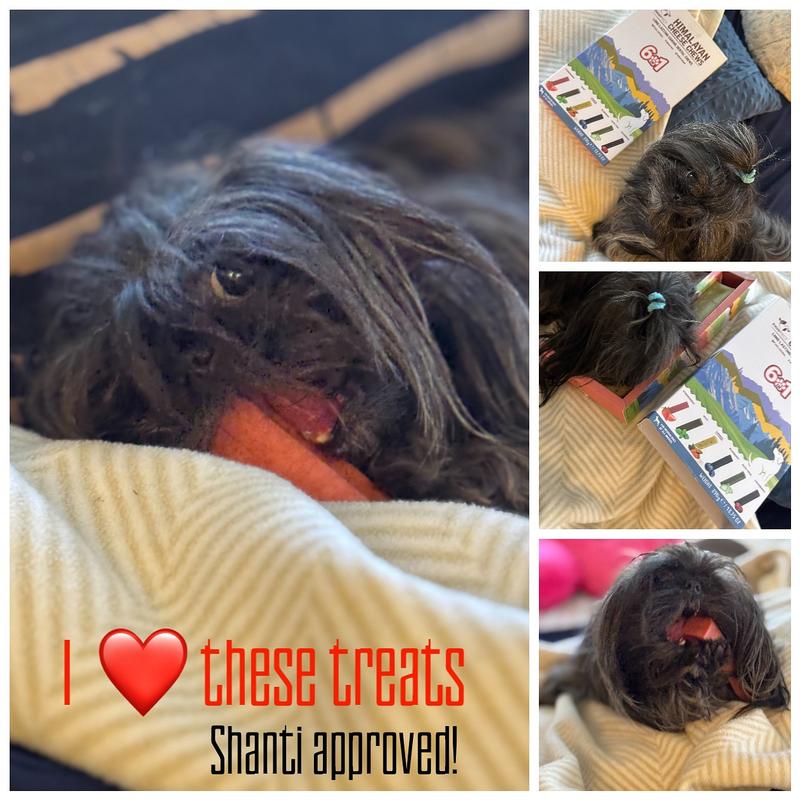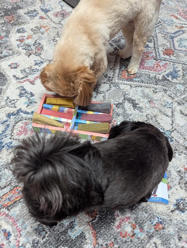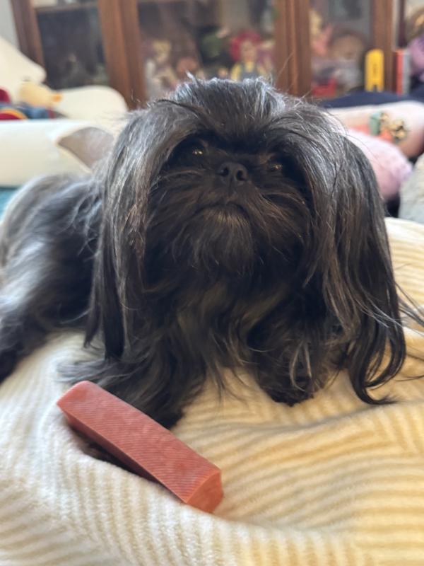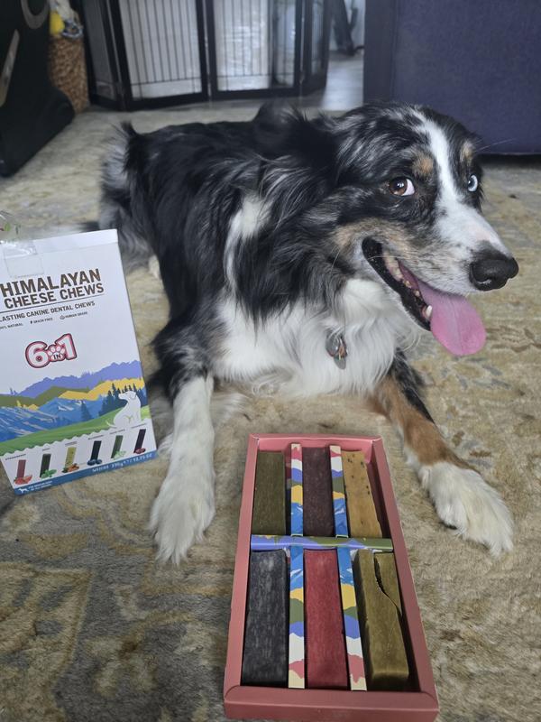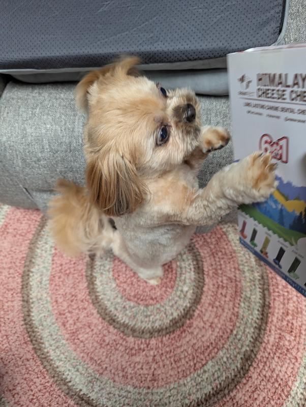 We have two Shih Tzu dogs and are so happy with the Himalayan Cheese Bars, especially for our nearly two year old puppy, Spud! Our four year old, Cora, chose blueberry