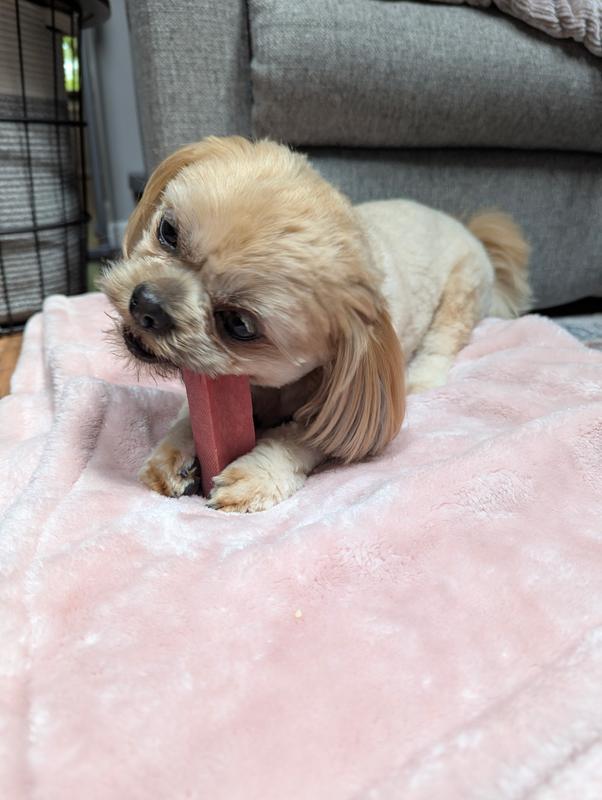 We have two Shih Tzu dogs and are so happy with the Himalayan Cheese Bars, especially for our nearly two year old puppy, Spud! Our four year old, Cora, chose blueberry for her first chew and Spud chose strawberry. They each chewed them so long the first day that we had to cut them off! Spud is now on chew number two, the cranberry treat. The first one lasted a week and there is still quite a bit left to microwave into a treat, as suggested on the package. Cora stopped eating hers but she can be a little finicky. Despite not chewing it, she guards it very closely, perhaps saving it for a later date! The treats last so long that we have not yet given them the last three flavors but are excited for them to try them. Spud is a huge fan of the two he has tried and we plan to purchase more for him in the future. We love the natural ingredients!