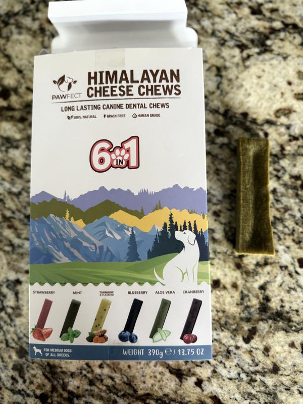I’ve been purchasing another brand of yak cheese for years. I wanted to try some flavors. First, they was smaller than I expected. Second, dogs only chose two they liked. Third, the first one broke into several little pieces on the first bite and my doodle got chocked. I watch very carefully when they chew anything just bc this can happen with anything. Due to the small size that doesn’t last 10 minutes at the most and the fact my two only like a couple flavors I will not repurchase.