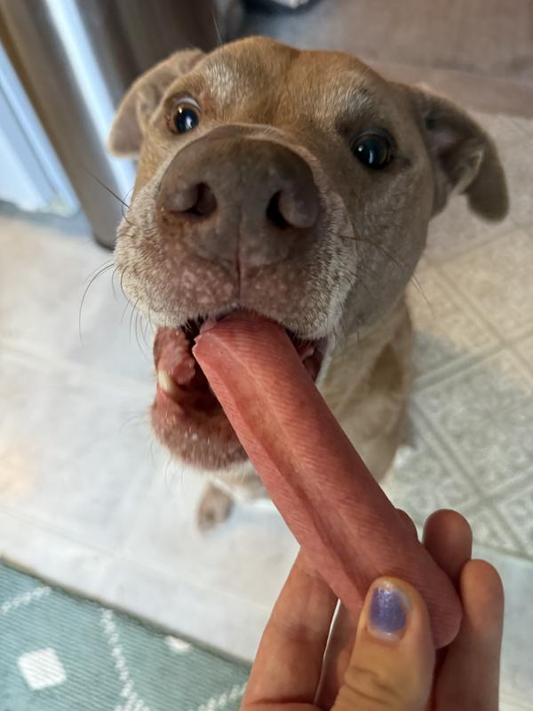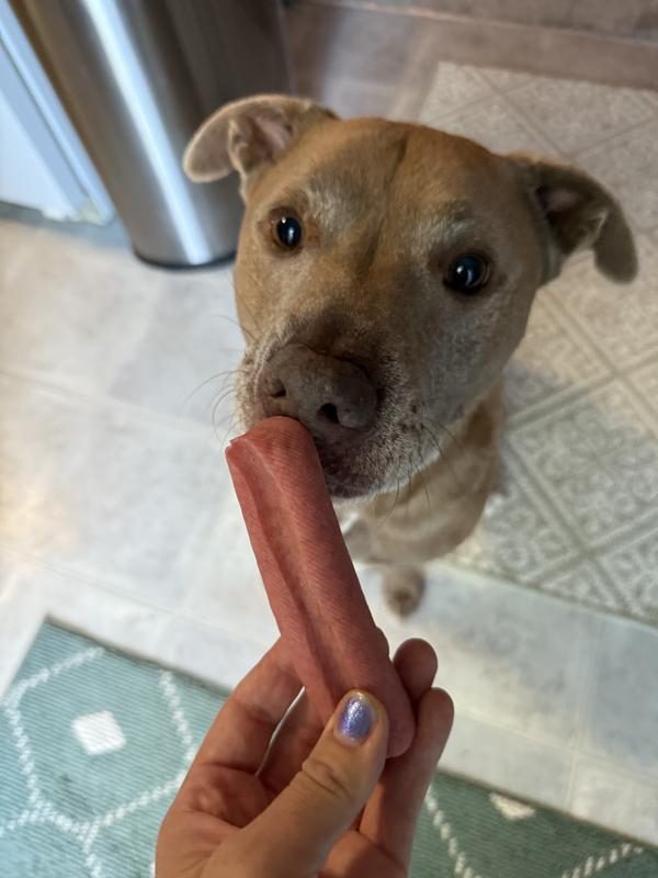 My dogs LOVE these chews and the ingredients are so simple and clean! These are great for tough chewers like my pitty and they kept him busy for 1-2 hours, much longer than any frozen treat does! My dog isn’t picky but he loved all the flavors!