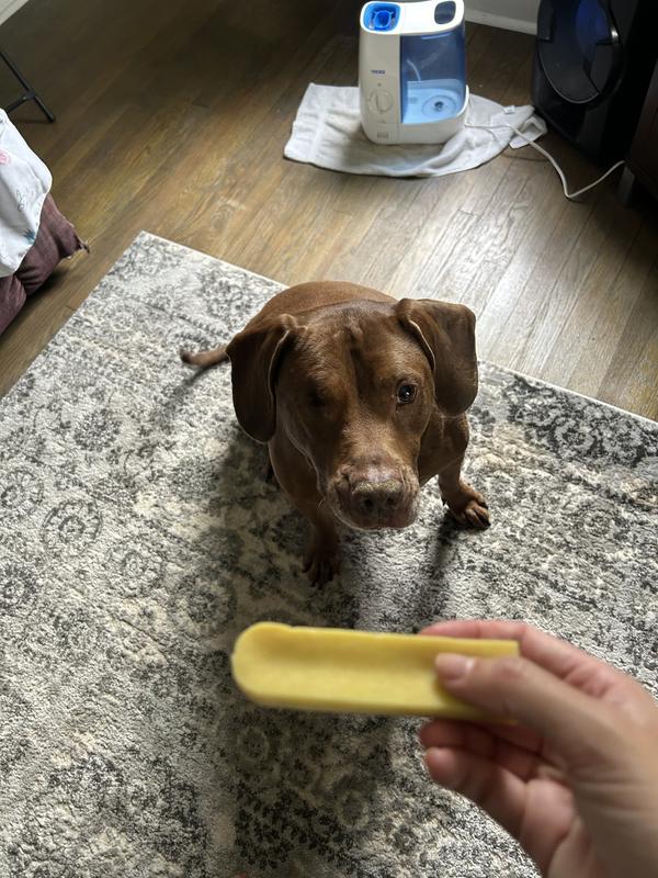 I love giving my dog something to keep him entertained now and then when a toy just won’t do the job. This does. He knows what the container looks like now after a few times and he gets so excited. They do not make as much of a mess as other Himalayan chews we have had. And it doesn’t bother his sensitive stomach either. These are a big win in our household!!