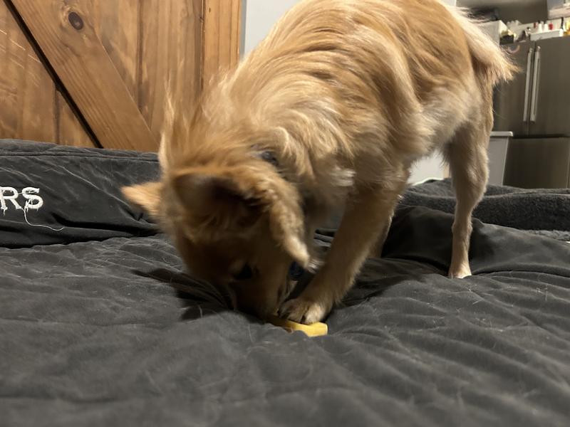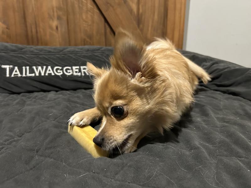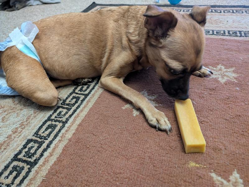 My chihuahua/pomeranian was super excited as I was opening the package for these chews! He immediately started gnawing on it, licking it and scraping it with his