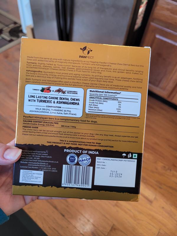 Pawfect Himalayan Cheese Chews Large All Natural High-Protein Grain-Free with Turmeric & Ashwagandha-Indian Ginseng Dental Dog Treats, 3 count