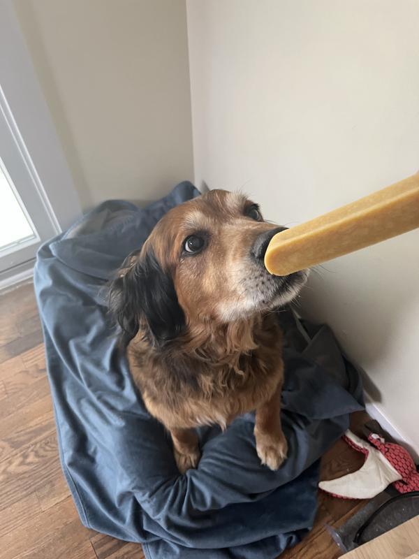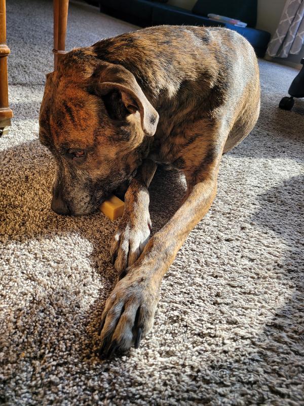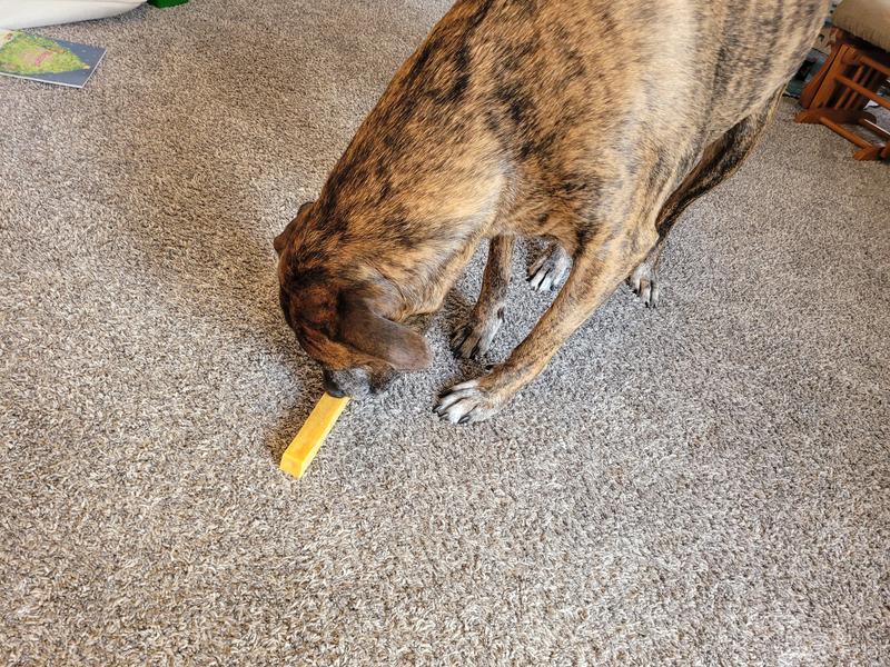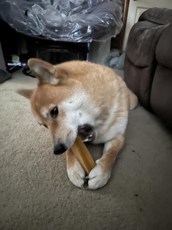 This one has been a hit with a picky chewer. He is the kind who is usually uninterested or is a single session chewer. But he has continued to enjoy this, also very long lasting chew. Good product 😁