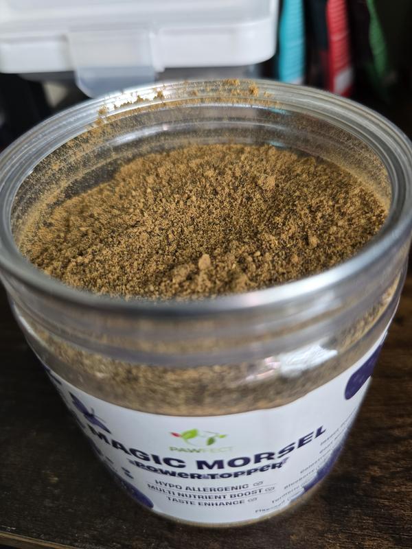 This is the first time I've tried a powder food topper and wasn't sure how it would go over with my boy, Finnegan. He LOVED it! We think he has allergies and I'm hoping this will help. I love that it's so nutritional! I am delighted by his response!