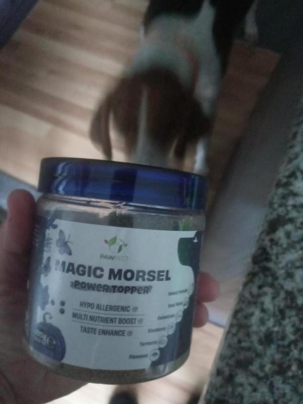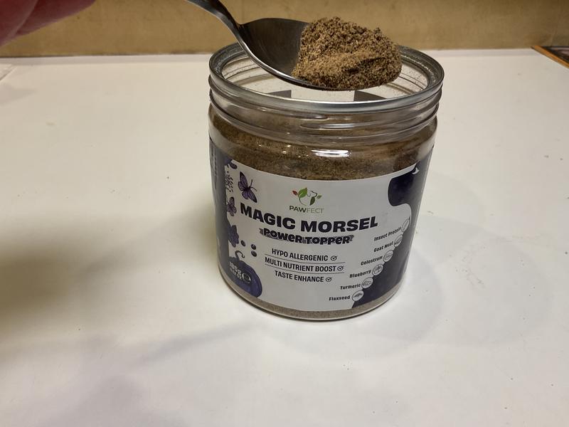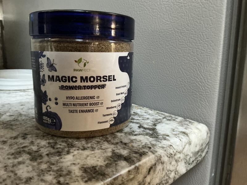 I have a 10 year old lab and even though he is not picky, he knows if something is missing at meal time. I usually add a scoop of wet food, probiotic or a little bone broth. Something special. I tried the magic morsels and what a hit! He really likes the taste and I love the ingredients. It’s nutrient dense and has blueberries and turmeric. It’s a win win at my house.