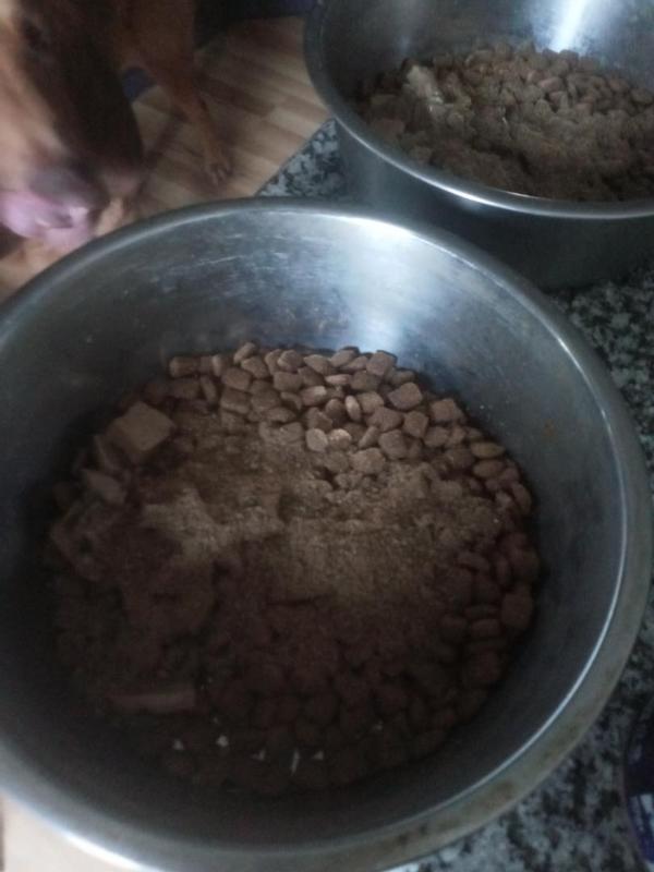 Gunner likes to try new things at times. And to him it's a treat. I sprinkled it on top of his food. He seemed to like it a little bit. I don't think it wasn't what he expected. He's used to more chucks instead of something a little more finer.