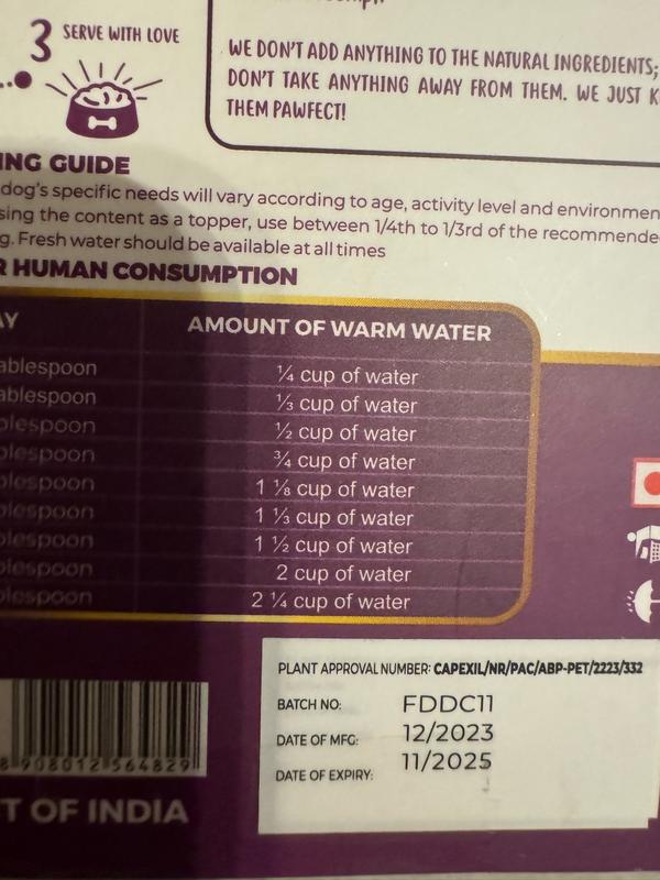 I've been using this freeze-dried dog food for a while now, and overall, I think it's a great product! It's nutritionally balanced, which is a big plus for me, and I love that it's grain-free, as that seems to suit my dog's diet much better. Rehydrating the food is pretty simple: you just add water, and in a few minutes, it's ready to serve. However, I did find it a little tricky to get the water-to-food ratio just right. If you're not careful, it can end up either too thick or too watery, which can be frustrating when you're trying to prepare a consistent meal for your dog. I’ve found that it takes a bit of trial and error to perfect. That said, once you get the hang of it, the food turns out great, and my dog seems to really enjoy it! I appreciate how easy it is to store the freeze-dried format, and I feel good knowing that I’m giving my dog a nutritionally balanced, high-quality meal. Would definitely recommend to others, especially if you're looking for a convenient, grain-free option. Just be prepared to experiment a little with the water!