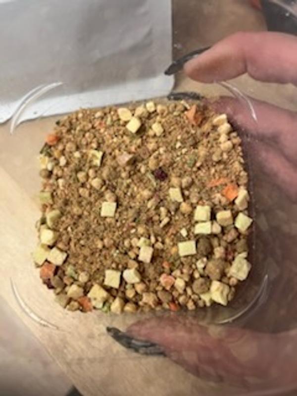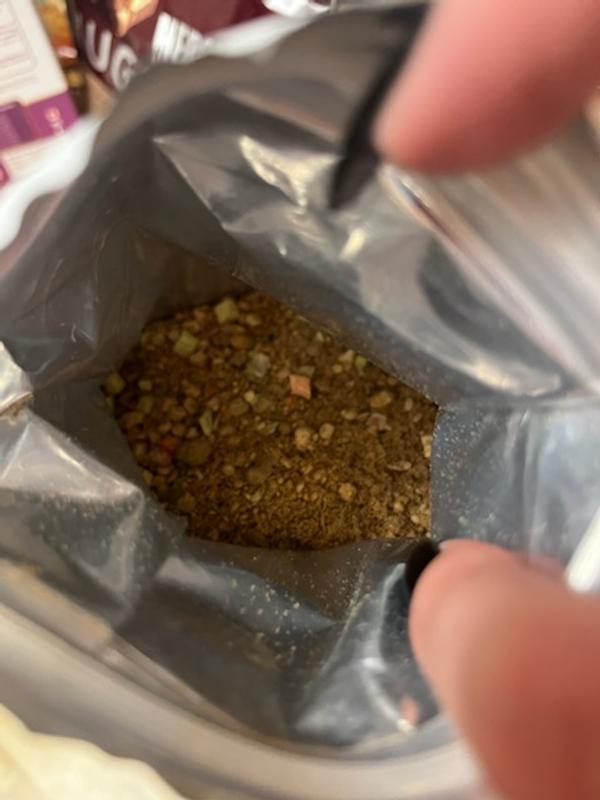 Looked okay as a powdery mix. Looked like puke when it was hydrated. On the plus side the Dogs liked it. On the minus side it gave them sewage pooh. This one is a nope for us.