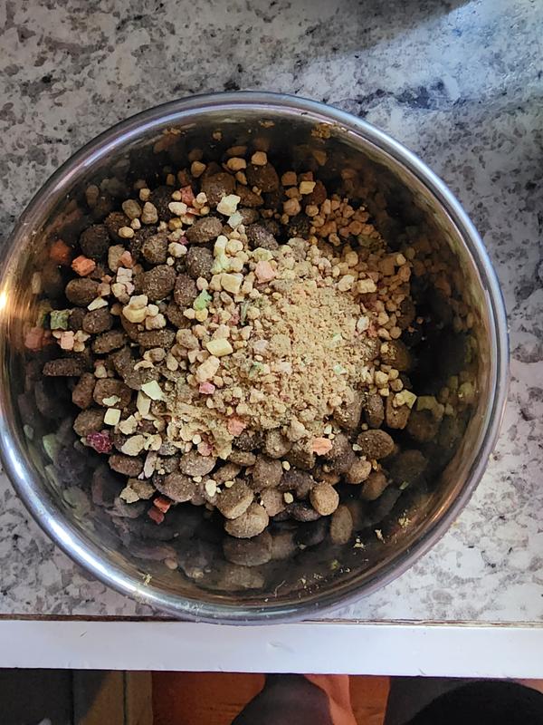 My bully girl absolutely loved this! I sprinkle a little over her food and she licks the bowl clean. If I forget she stares at the bag and whines. Looks like I'm buying more! What's weirder is she normally does not like chicken flavor anything.