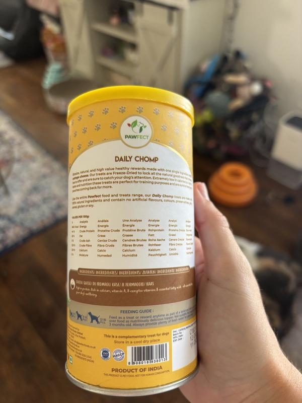 Do these treats contain any artificial additives or preservatives? No, Nature's Munch freeze-dried cheese-based treats are 100% natural and free from artificial additives, preservatives, or fillers.