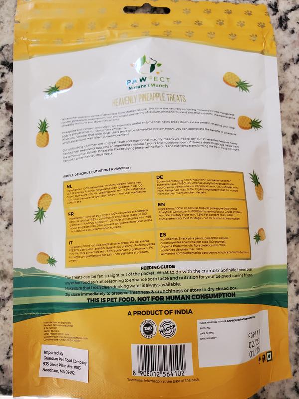 Pawfect Nature's Munch Freeze-Dried Pineapple All Natural Vegan Dog Training Treat, 1.41-oz bag