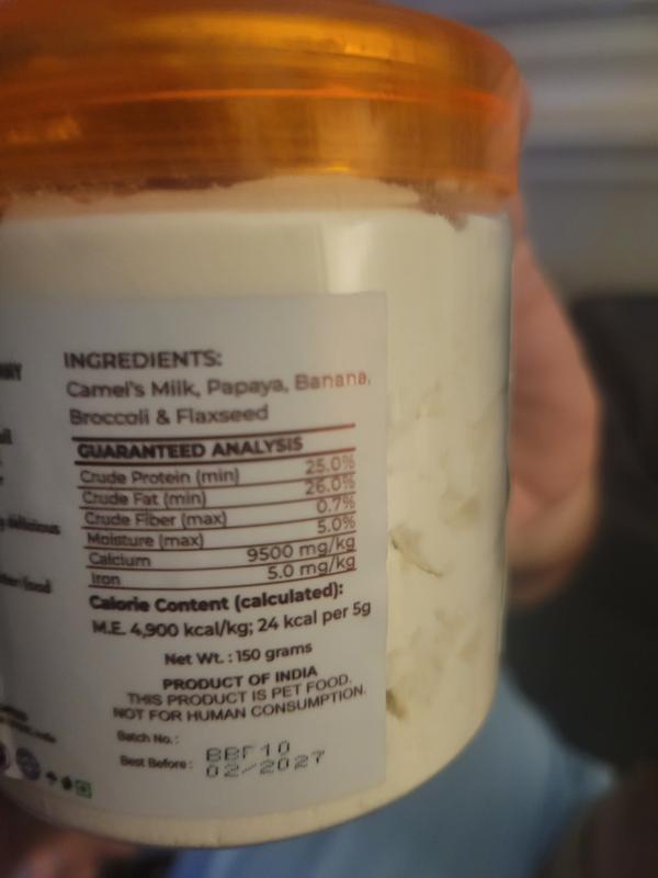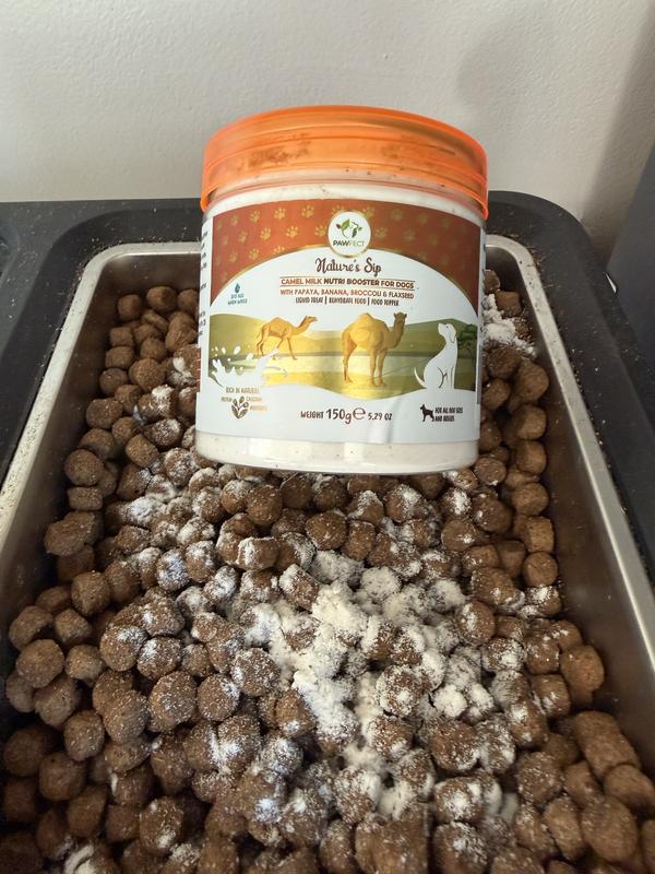 Both of my Aussie girls have developed a sensitive stomach. I was in the look for a product that help them digesting their food that also have a good taste without being medication. This product came up on my list of recommendations and I cannot be more happy that we picked a tub. My dogs look happier and less heavy after adding the camel milk powder to their meals. When they go outside, their stool looks better and no more cleaning needed because a messy visit to the outside bathroom. This is a great meal enhancer that will make your dog's digestion go easier.