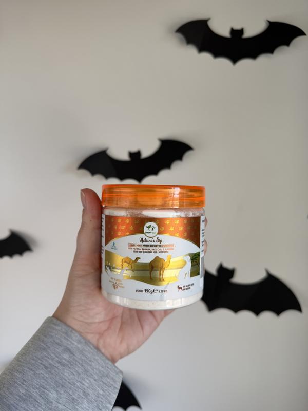 • Combines camel milk with papaya, banana, broccoli, and flaxseeds to support healthy digestion and nourish your pet’s skin—and contains antioxidants and omega-3s to boost immunity.
