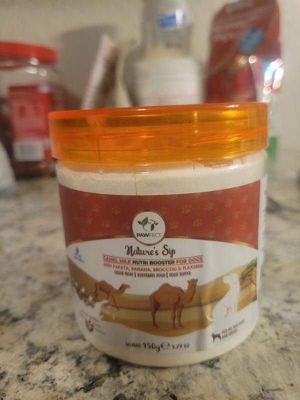 Pawfect Nature's Sip Camel Milk Powder with Papaya, Banana, Broccoli & Flaxseed Grain-Free Dog Food Topper & Liquid Treat, 5.29-oz jar