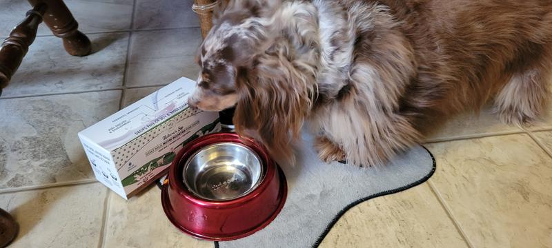 One of my dogs is a picky grazer and the other can barely eat anything that isn’t dry kibble without getting an upset stomach. I’ve been using the Natures Sip Goat