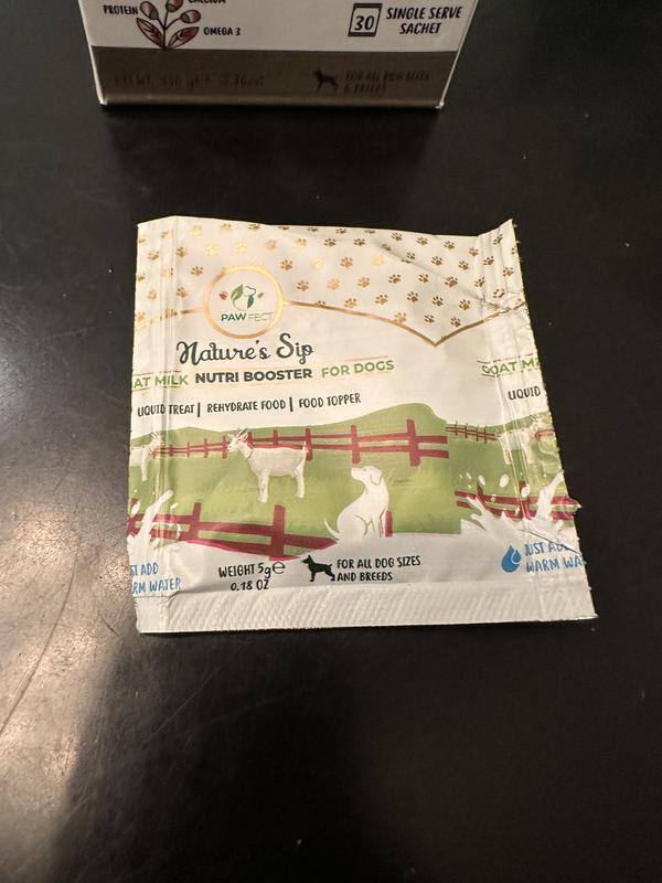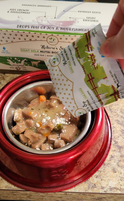 I was excited to try the Nature's Sip Goat Milk Nutri Booster to supplement my dog's food. I loved the idea of having a topper I could serve as is, mix it for a