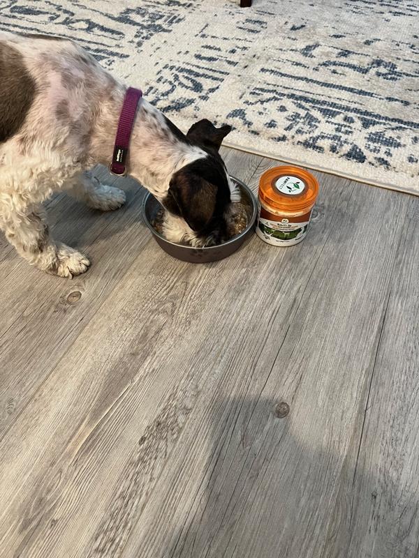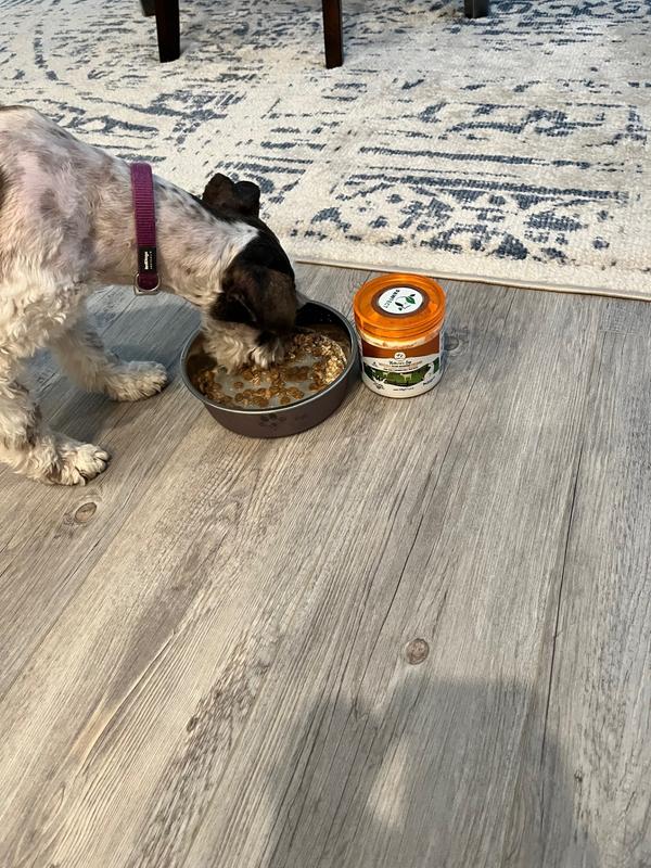 Even my picky pants princess dog loved this stuff. She normally doesn't take anything extra on her food and in her old age, I've been trying to get some added nutrients to her food to no avail. She ate this right up though. My lab, of course, inhaled it as labs do. I like that I can top their food with this either in liquid form, or straight as the powder.