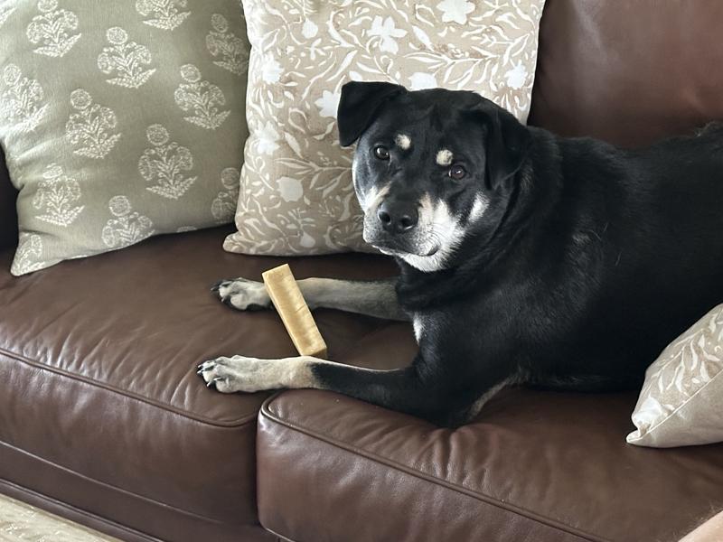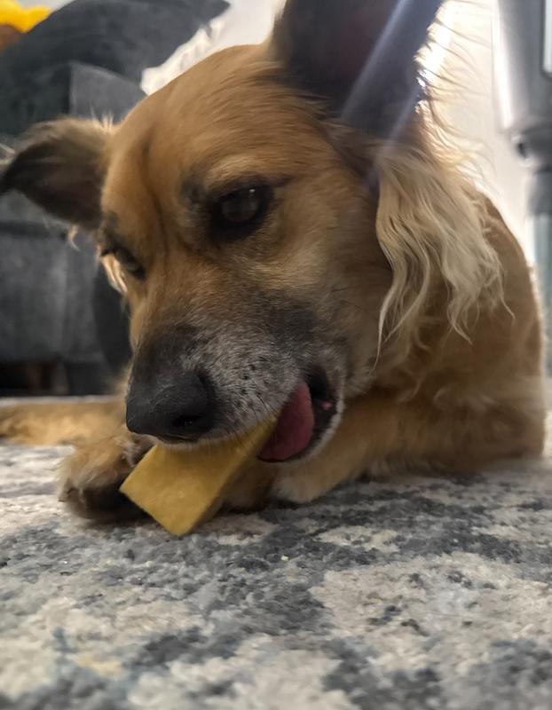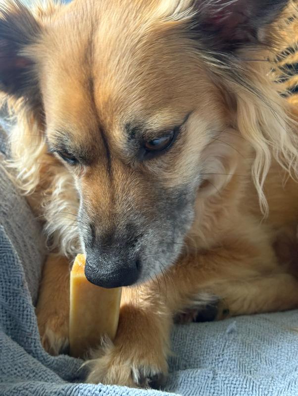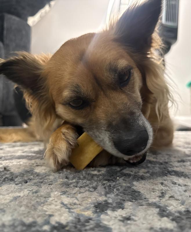 My dog didn’t show much interest in this yak chew initially. She chewed for a minute then it laid there most of the day before she returned and chewed for a few minutes longer. She doesn’t seem to be the biggest fan of this unfortunately. It seems like a well made chew but it just doesn’t capture her attention for very long.