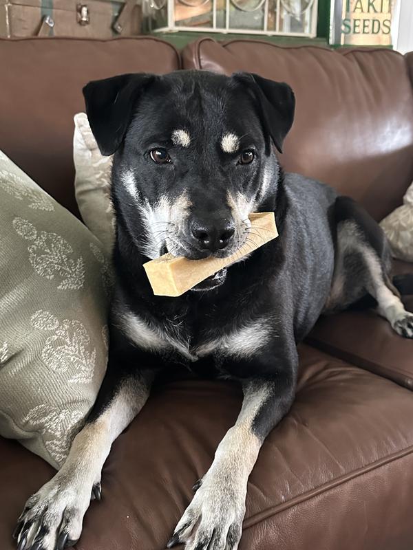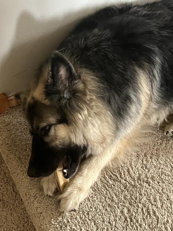My dog loves these chews! She goes for weekly physical therapy sessions and we are always trying to find a new chew to keep her occupied during her sessions. This chew lasted our whole 35 minute session. She has special dietary restrictions and this fits into her special diet perfectly. Will definitely be purchasing more.