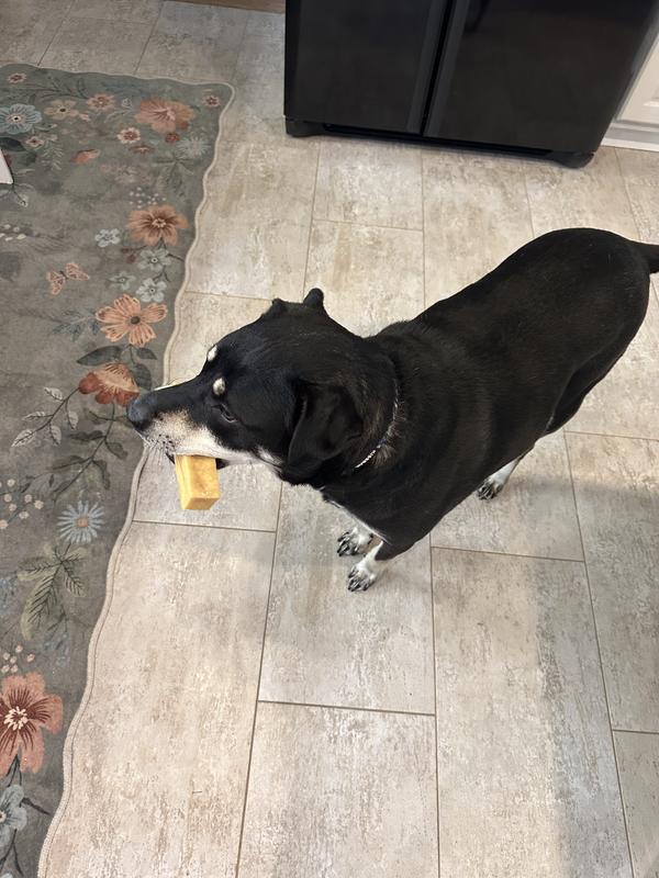 Gertie loved this and carried with her everywhere. I wasn’t so sure about cheese flavor but she really enjoyed every bit of it. I will definitely be buying more of these for her to enjoy in the future.