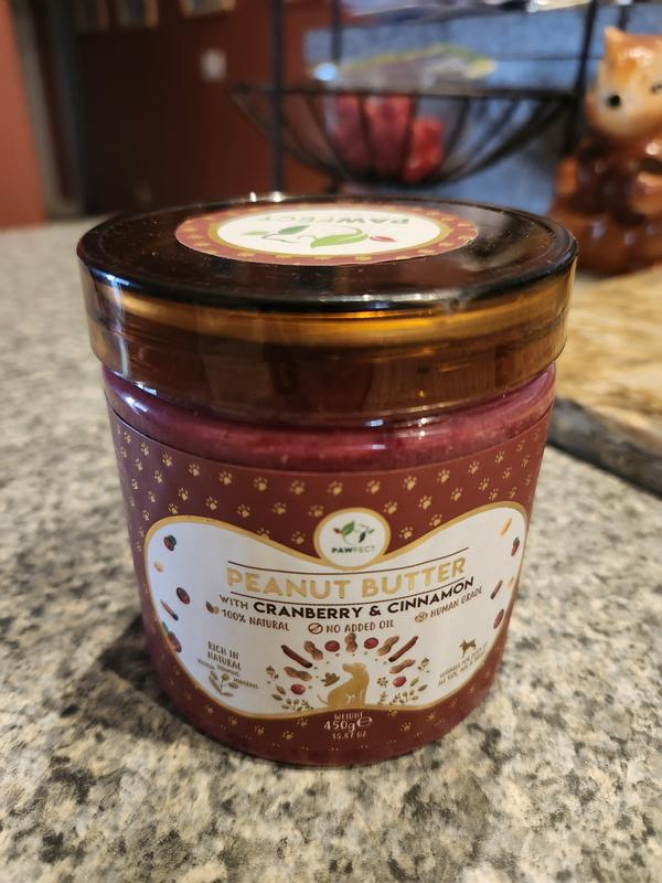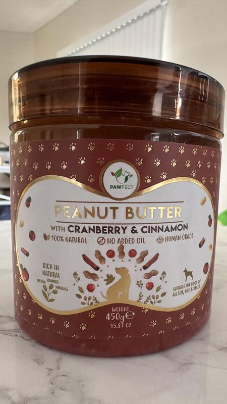 Pawfect All Natural Peanut Butter with Cranberry & Cinnamon Grain-Free Food Topper & Lickable Dog Treat, 15.87-oz jar