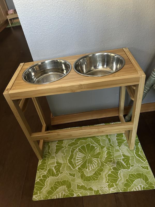 We have the bowls sitting on the lowest shelf and it was still to tall for our dog