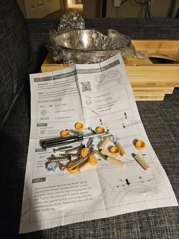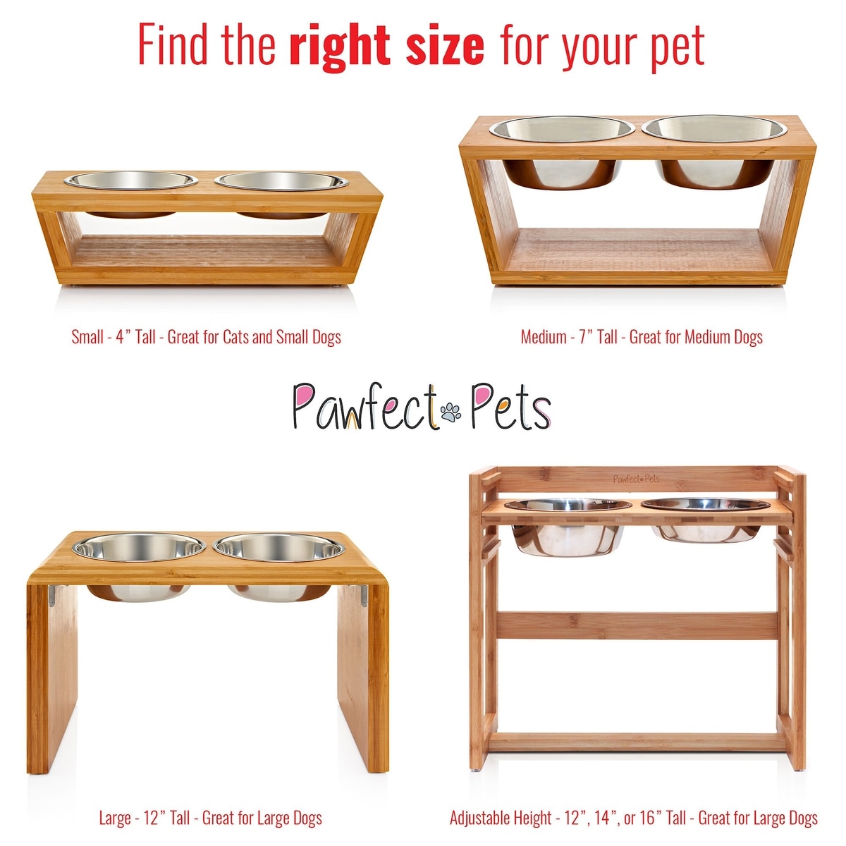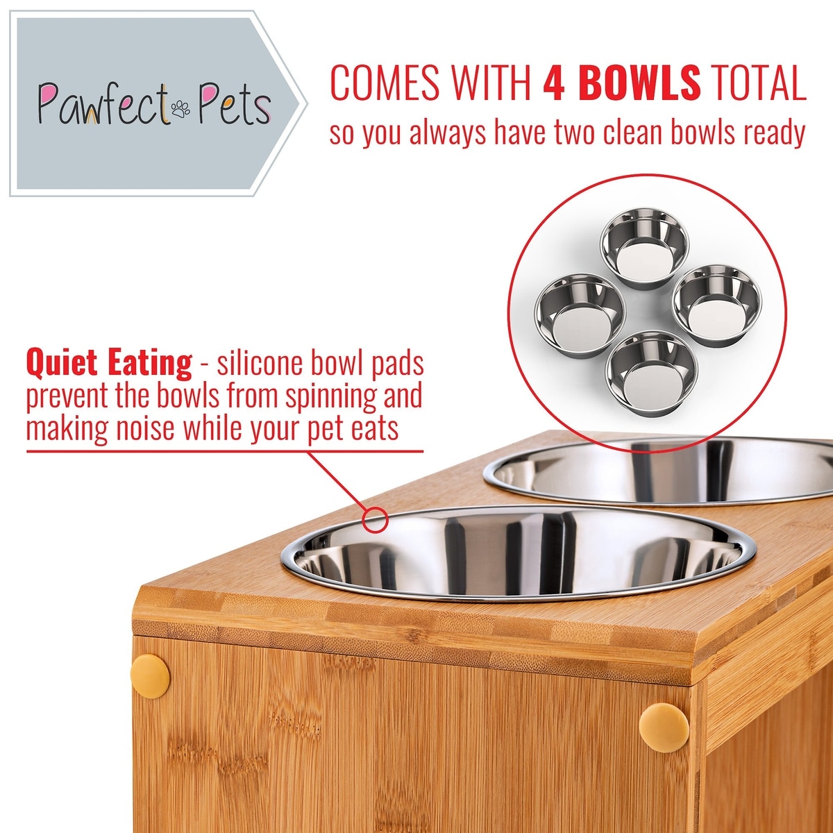 Pawfect Pets Elevated Feeder Raised Dog Bowl Stand with four Stainless Steel Bowls, Large, 12-in
