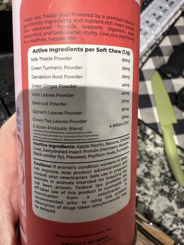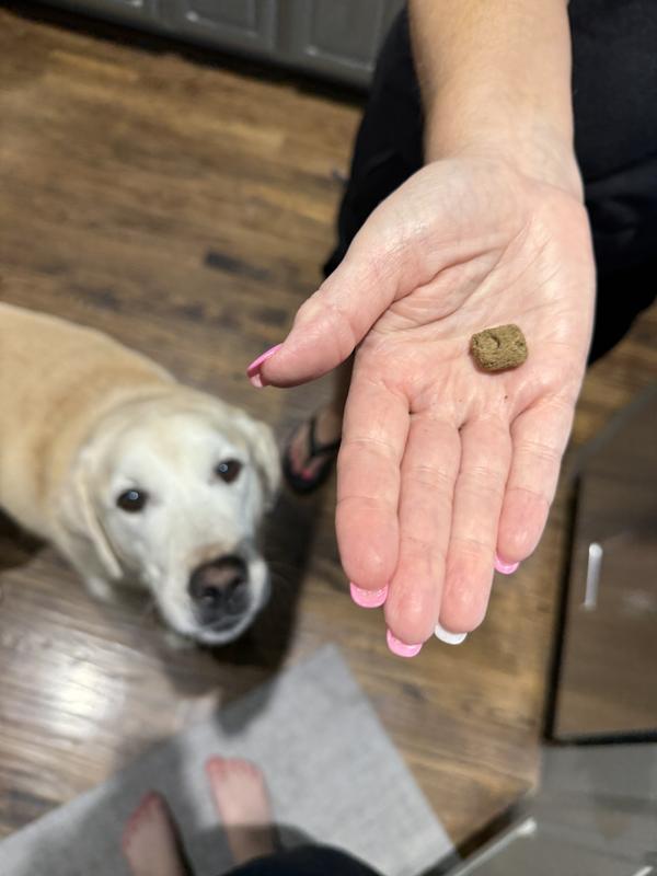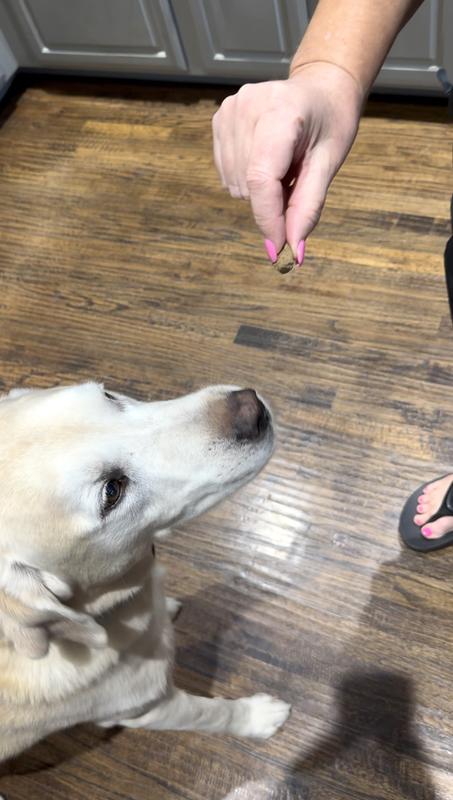 I gave these Gut Guard Bites to my three dogs (ages 6 to 9), and they were instantly obsessed! The moment I open the can, they come running—even circling and wagging like crazy, hoping for more. While the package calls them "soft chews," they’re actually more of a freeze-dried texture, which my dogs had no problem with. I appreciate that there’s no strong odor, and the resealable canister keeps everything fresh and makes a great attention-grabber when shaken. Too soon to tell long-term health effects, but the enthusiastic response alone has me wanting to try more products from this line. So far, so good!
