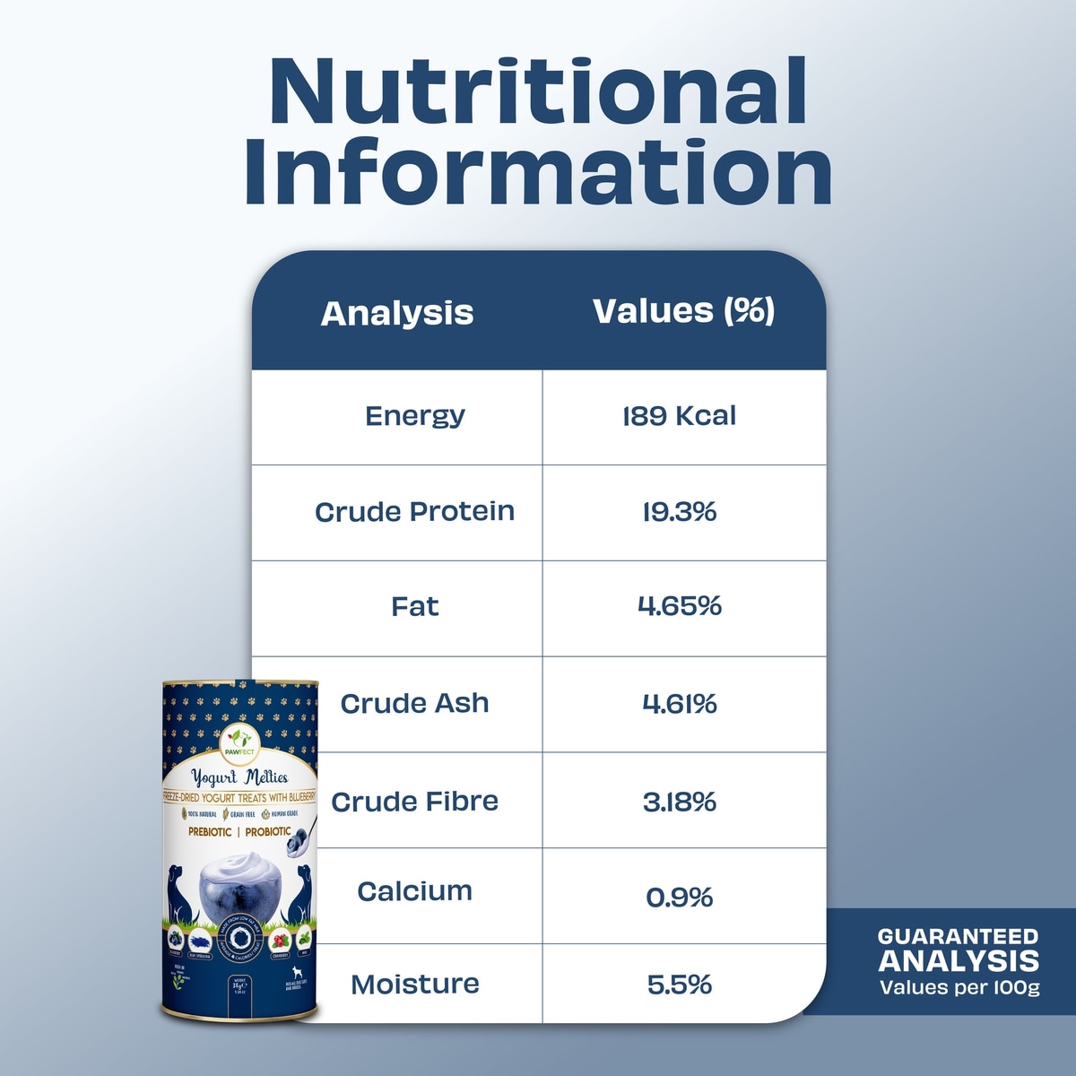 Pawfect All Natural Grain-free Yogurt with Blueberry Prebiotic Probiotic Freeze-dried Dog Treat, 1.34-oz canister