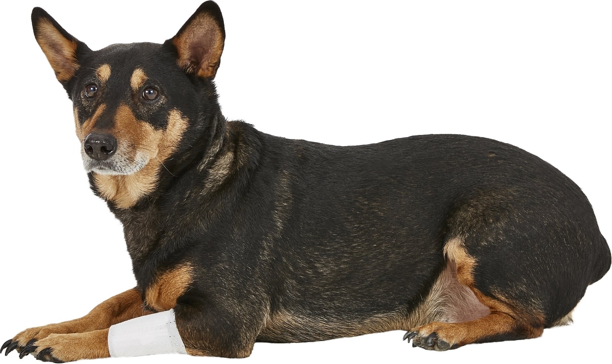 This bandage is designed to prevent your curious four-legged family member from licking or chewing his bandaged injury.