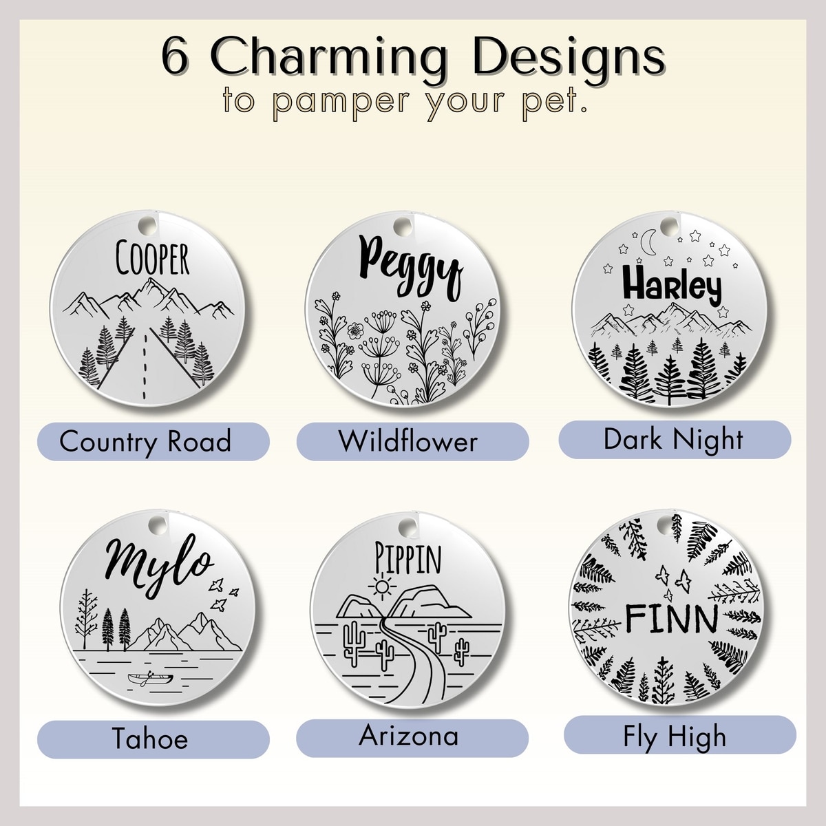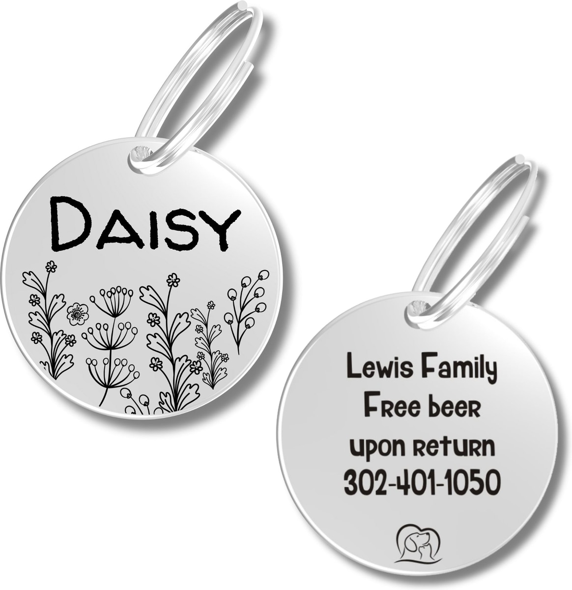PawFurEver Circle Personalized Dog ID Tag, Silver, Wildflower
