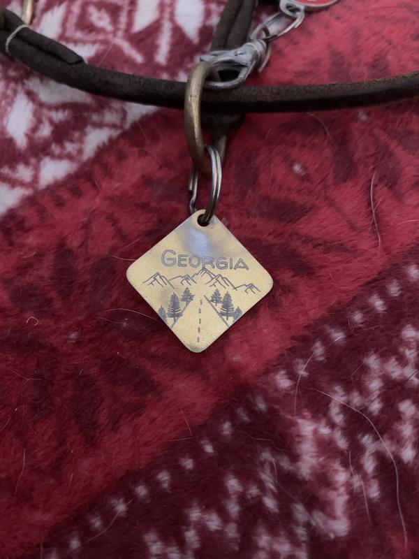 I LOVE this tag so much! The font is easy to read and clearly visible from every angle (I got the Darknight background with Shadow font). It’s a little big right now for Ekko (he’s a nine week old corgi puppy) but no doubt he’ll grow into it real fast. It’s held up well with being dragged on the ground as he sniffs around our yard! Gotten a lot of compliments on it too!