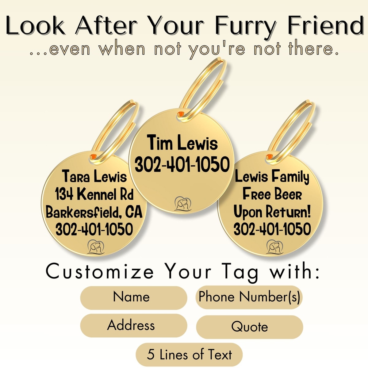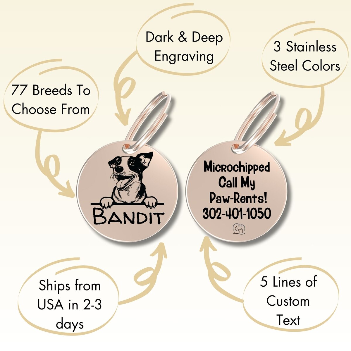 PawFurEver Dog Breed Stainless Steel Personalized Dog ID Tag, Bernese Mount, Gold
