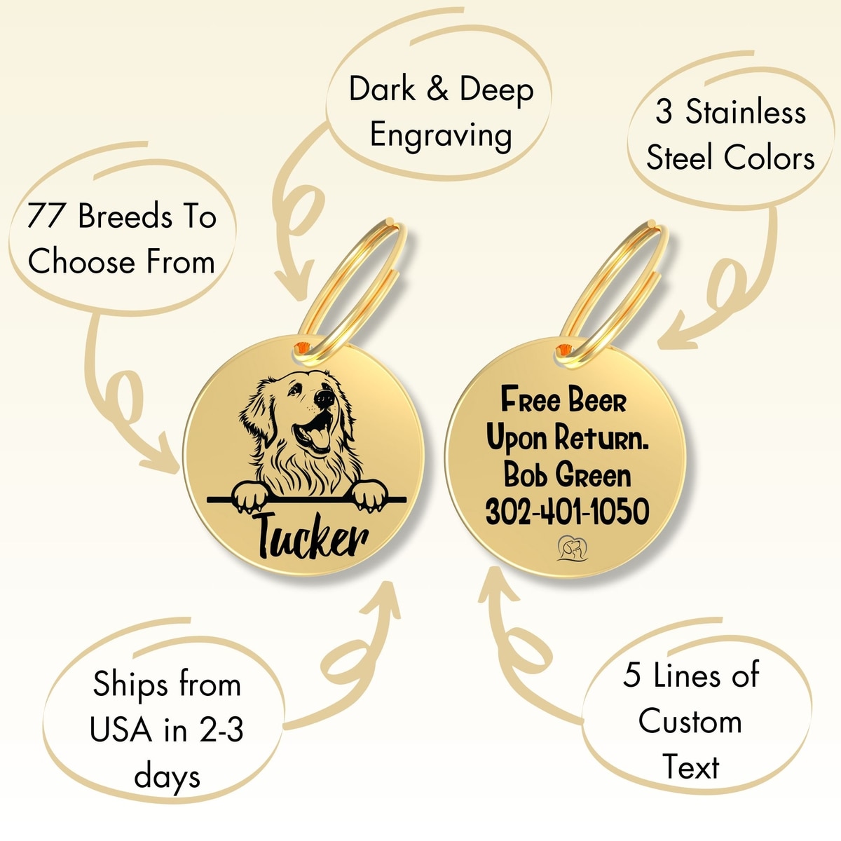 PawFurEver Dog Breed Stainless Steel Personalized Dog ID Tag, Port Water Dog, Gold