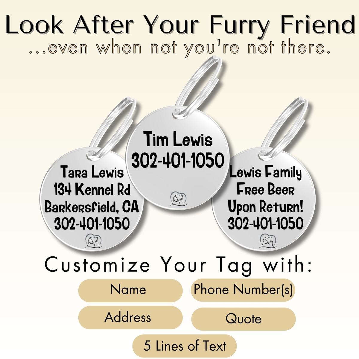 The PawFurEver Dog Breed Stainless Steel Personalized Dog ID Tag is 29 millimeters in diameter.