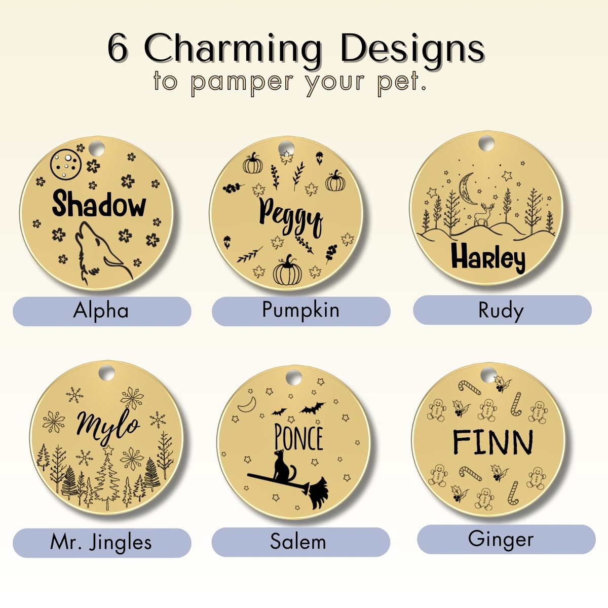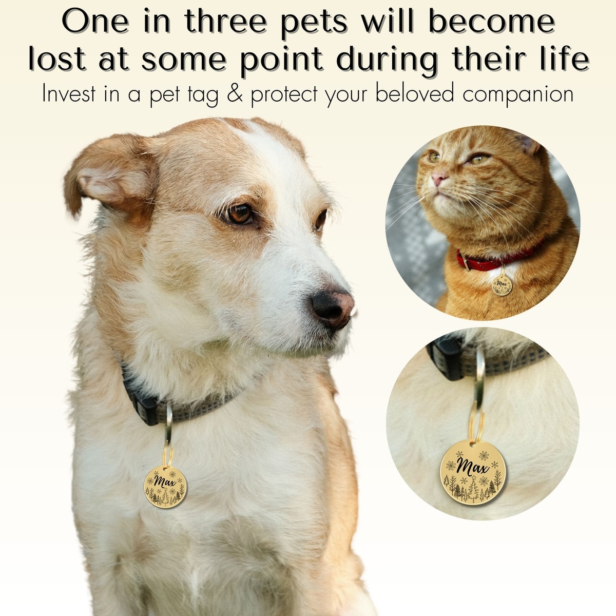 PawFurEver Christmas Holiday Dog & Cat ID Tag, Gold, Rudy