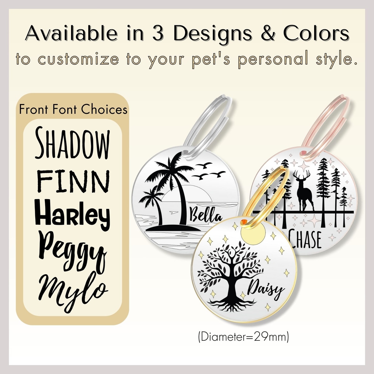 Love the front of the tag, and also love the idea of the QR code for details. But found it difficult for my hone to scan the QR code while activating. The code is not quite contrasting enough to work consistently. But other than that both our pups are now tagged and sporting a very nice beach scene, just in case they get away!!